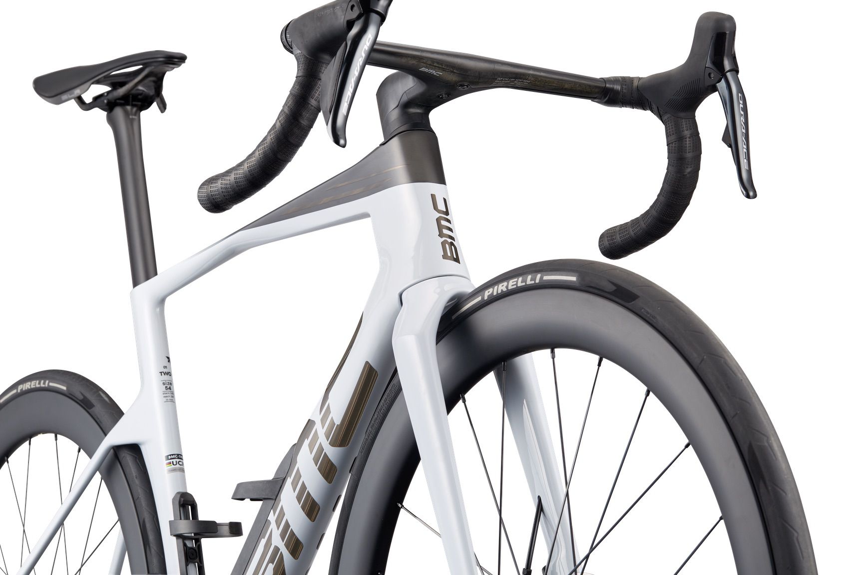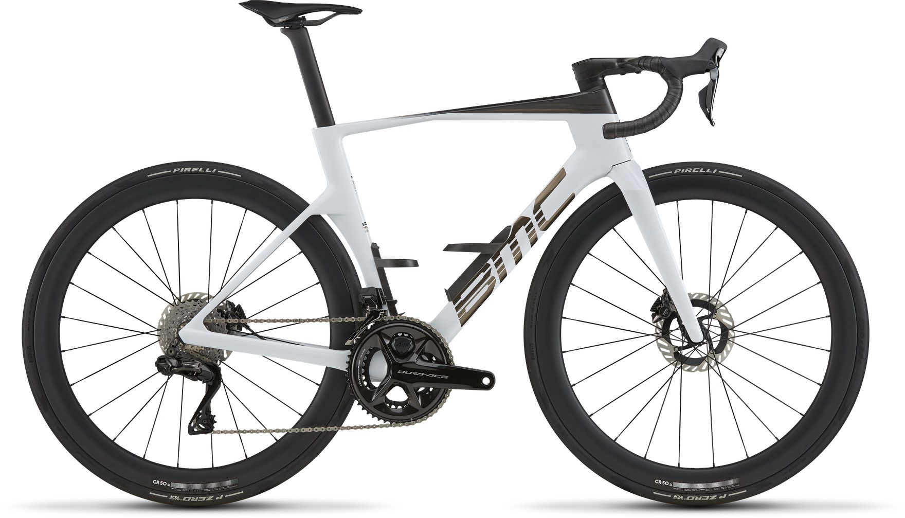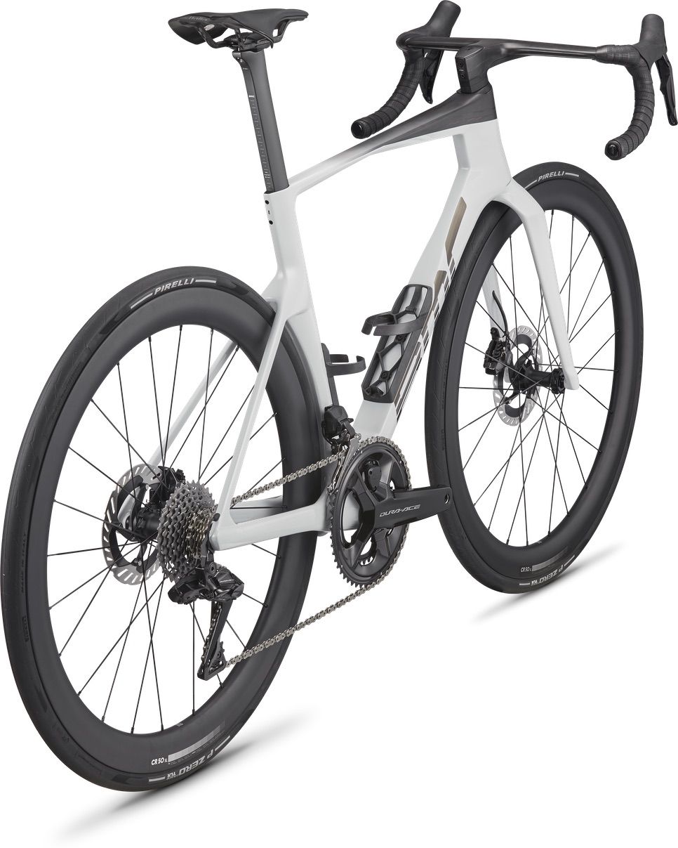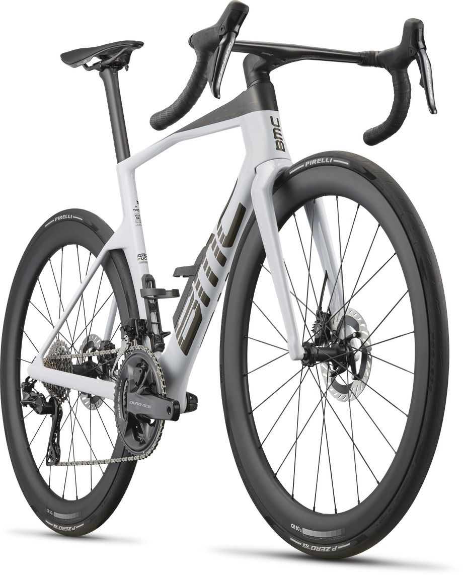 Konstrukcja z włókna węglowego BMC 01 Premium sprawia, że ten zestaw ramowy jest wyjątkowo lekki i niezwykle wydajny, a sztywność zapewnia dokładnie tam, gdzie potrzebuje jej zawodnik. Zestaw Shimano Dura-Ace Di2 z miernikiem mocy 4iiii zapewnia precyzyjną zmianę biegów, hamowanie i wgląd w wydajność w czasie rzeczywistym. Kokpit ICS Aero Gen 2 o niskim stosie tworzy system zoptymalizowany pod kątem utrzymania prędkości nawet przy ekstremalnych obciążeniach. Całość toczy się na szybkich kołach BMC CR 50 SL Carbon przystosowanych do opon bezdętkowych.